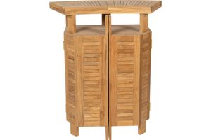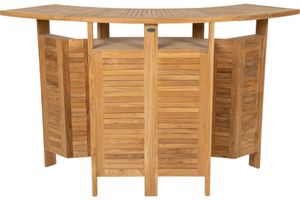 Lekker bardisk i premium teak. Nydelig på terrassen, både hjemme og på hytta. Kan også fint brukes innendørs. Topplaten kan foldes inn slik at disken tar mindre plass når den ikke er i bruk. Utstyrt med praktiske hyller på baksiden.