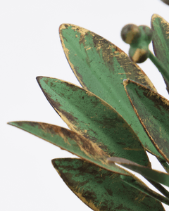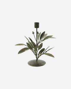 Håndlagd lysestake i antikk grønn jern, dekorert med intrikate blader og bær, tilfører en naturlig og innbydende sjarm til enhver innredning.
