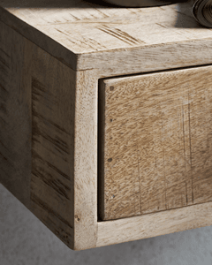 En enkel og funksjonell løsning for enhver plass. Med dette sidebordet er det ikke nødvendig å ta opp ekstra gulvplass. Bare monter det på veggen som prikken over i-en på rommet ditt. Sidebordet i mango-tre har en skuff for briller, bøker og hva som ellers kan komme til nytte. Bruk det allsidige møbelet som et flytende nattbord på soverommet, som et sidebord ved siden av lenestolen eller et sted å samle nøkler og andre ting i gangen.