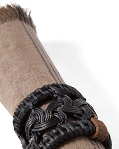 Løft din middagsopplevelse med våre håndlagde serviettringer i svart rotting. Hvert stykke viser den naturlige skjønnheten til håndvevd rotting, og skaper en perfekt balanse mellom rustikk sjarm og sofistikert eleganse til ditt bordarrangement. Den karakteristiske teksturen tilfører dybde og karakter til enhver borddekning, mens den ekte lærdetaljen med Lexington-logo gir et subtilt preg av luksus. Ansvarlig håndlaget i Vietnam av dyktige håndverkere, er hver serviettring litt unik, noe som gjør borddekningen din virkelig enestående. Disse allsidige tilbehørene kompletterer både avslappede familiemåltider og mer formelle anledninger, og tilfører varme og personlighet til din spiseopplevelse.