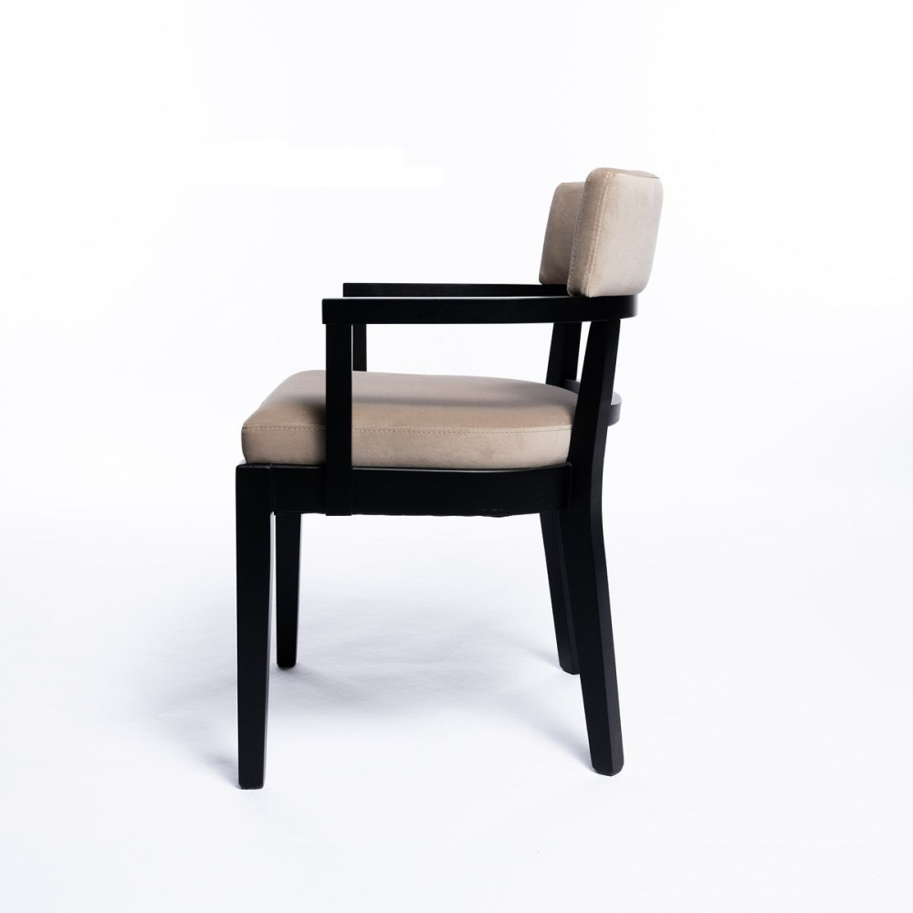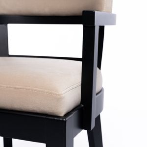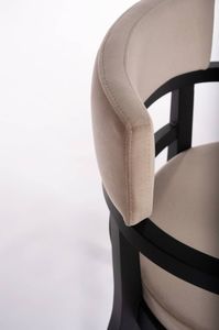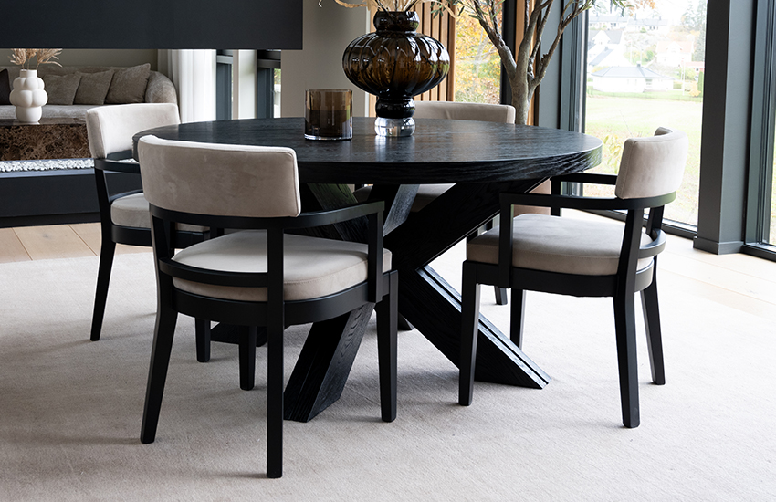 Denne spisestolen er et perfekt valg for deg som ønsker et stilrent og eksklusivt uttrykk i hjemmet. Med sin rundede, buede rygg og myke, organiske form har denne stolen et moderne preg som også harmonerer godt med et klassisk interiør. Polstringen i setet og ryggen, trukket i et lekkert stoff, gir fantastisk sittekomfort – ideelt for lange middager og hyggelige stunder.