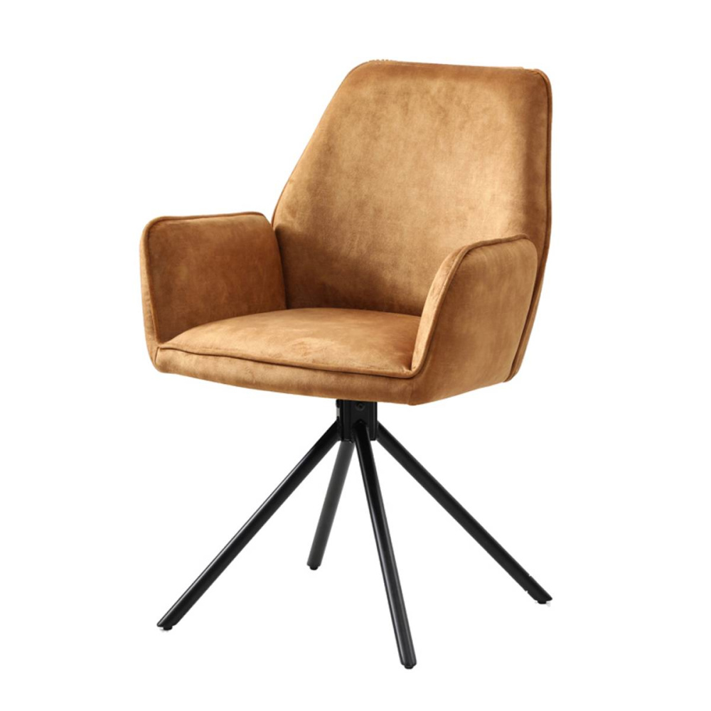 Elegant og komfortabel spisestol. Det svingbare setet er trukket i en nydelig velour og har ben i sort metall.