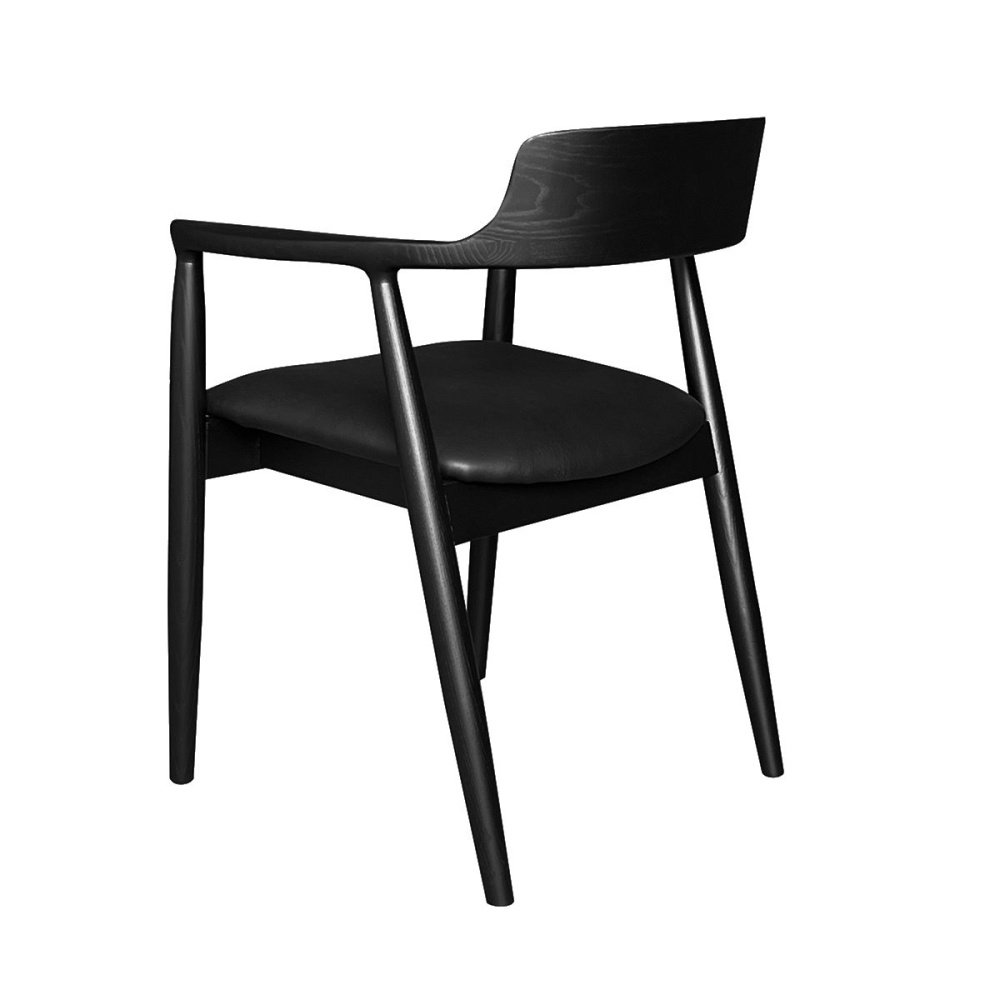 Eksklusiv og elegant spisestol i heltre eik med polstret sete i skinn. Med sitt tidløse design og nordiske formspråk glir den rett inn i de fleste type hjem. Utformingen på stolryggen samt det polstrede setet sikrer god sittekomfort.