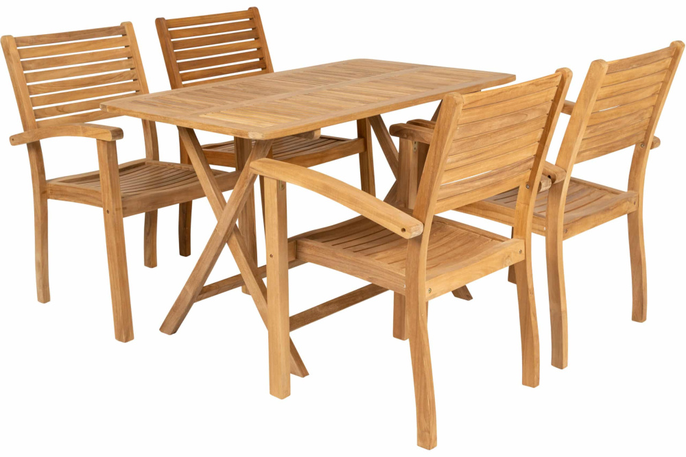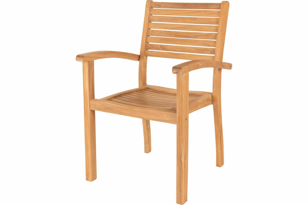 Stabelbar spisestol i teak. Teaken er sertifisert og kommer fra godkjente plantasjer i Indonesia. Fra serien Fredrikshavn.