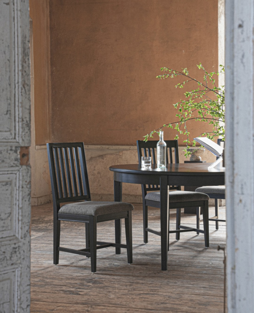 Utö 2.0 är en nett variant med lett vinklet rygg i tre, bred ryggstøtte och kledd sittedel. Stolen passar fint til spisebordene i Stockhom och Stockholm 2.0 seriene da den kommer i de samme fargene Whitewash, Grey samt Black.